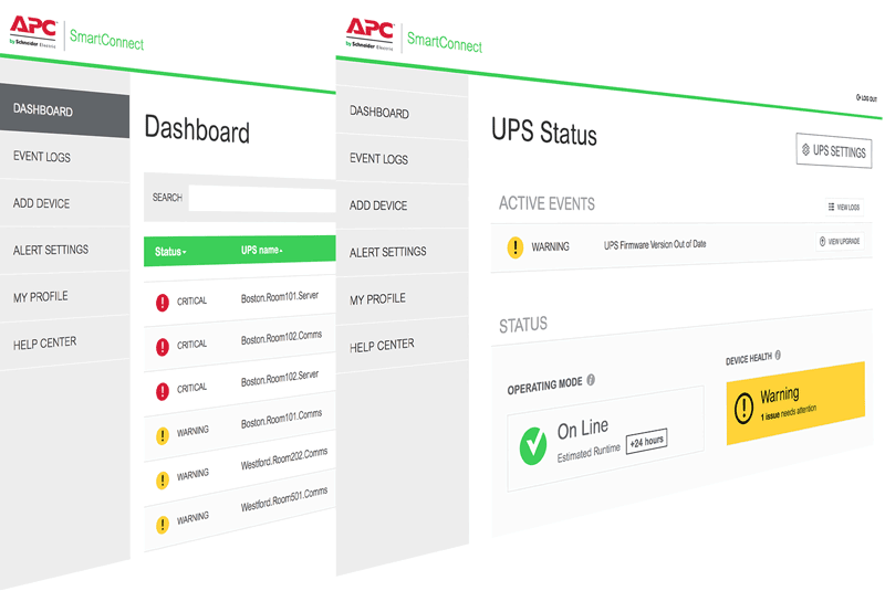 SmartConnect informs you which UPSs are subject to event storms or temperature variations and gives you the remote configurations that can help reduce wear on your equipment.